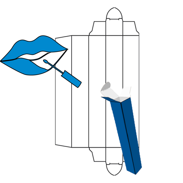 Our lip gloss box utilizes our straight tuck end with bottom slit lock design. This style is a perfect option for machine filling or for filling by hand. Use our online editor or design offline in Illustrator® to create packaging that will catch your customer’s eye. Choose from our selection of other cosmetic boxes or create your own custom sizes for your packaging needs.